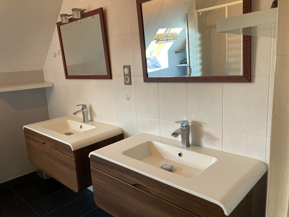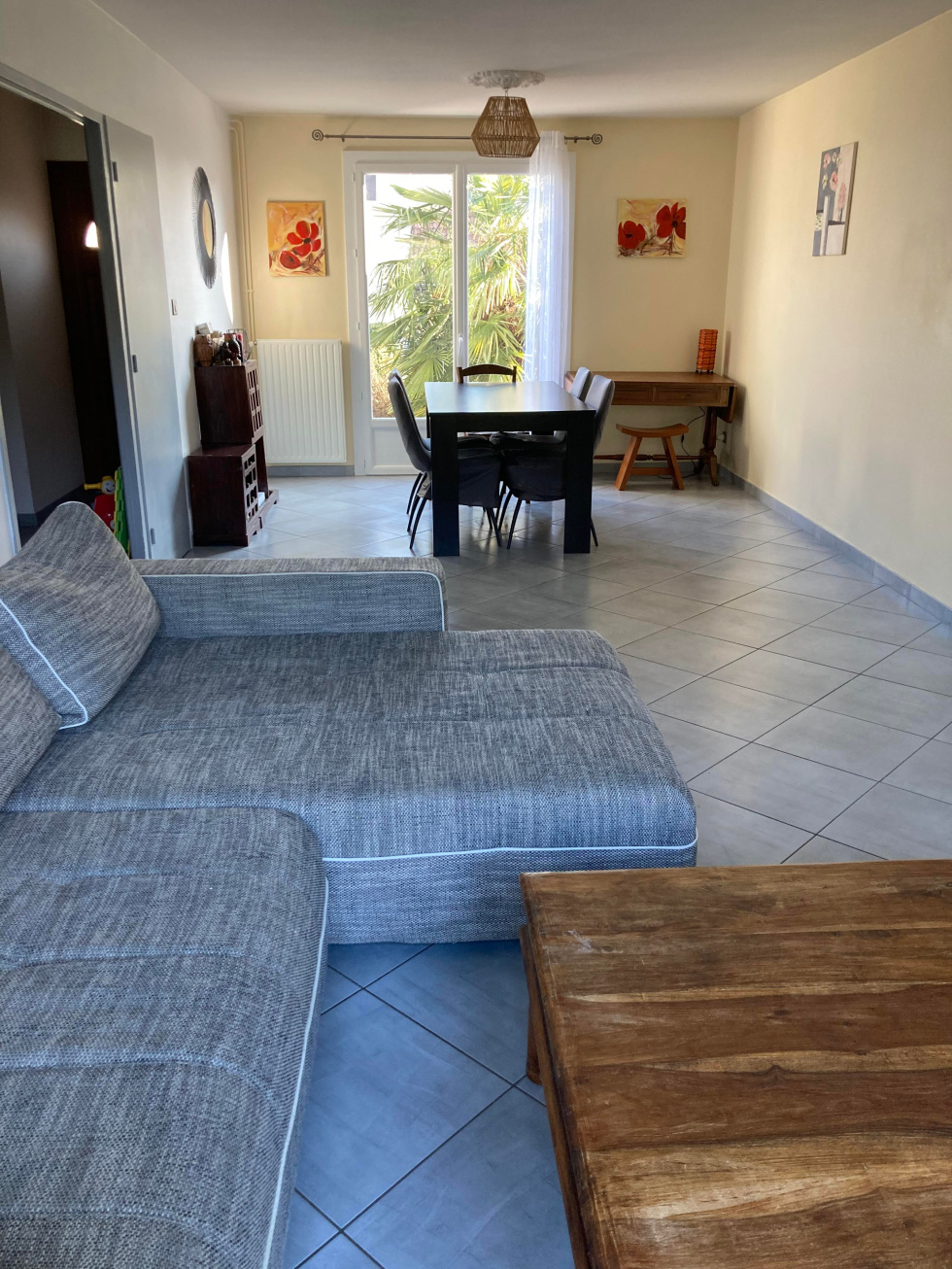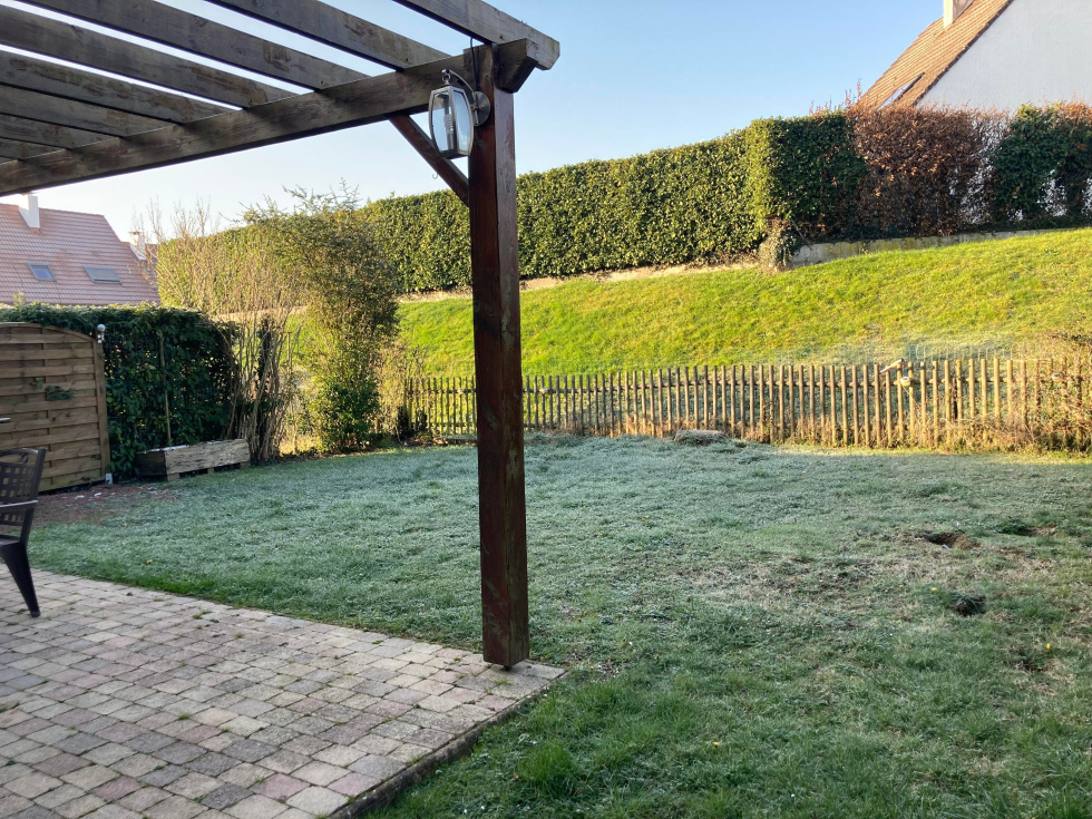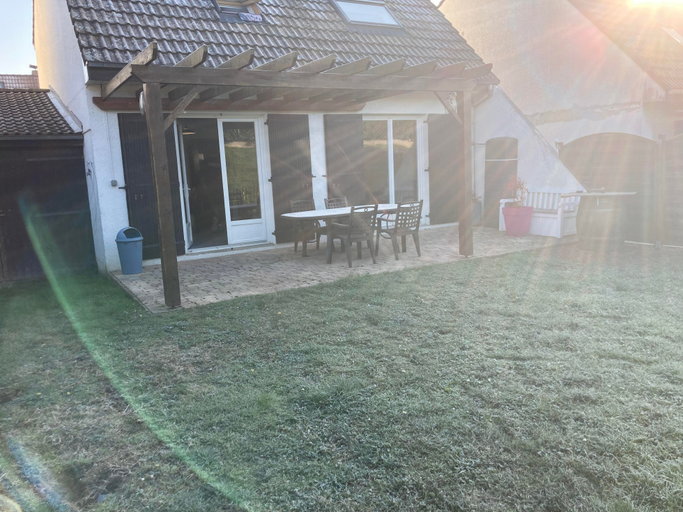 Maison d'environ 105 m² habitables composée au rez-de-chausée d'un hall d'entrée, d'un toilette, d'une buanderie, d'une cuisine fermée amenagée et équipée donnant sur une terrasse, un séjou/salle à manger ouvrant sur le jardin, un accès au garage; à l'étage : dégagement, salle de bains, WC et trois chambres avec placards. Le tout sur une parcelle d'environ 250 m² de terrain. Chauffage et eau chaude individuels gaz, eau froide individuelle.