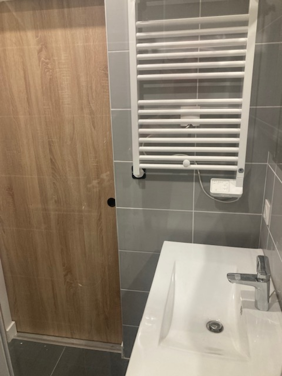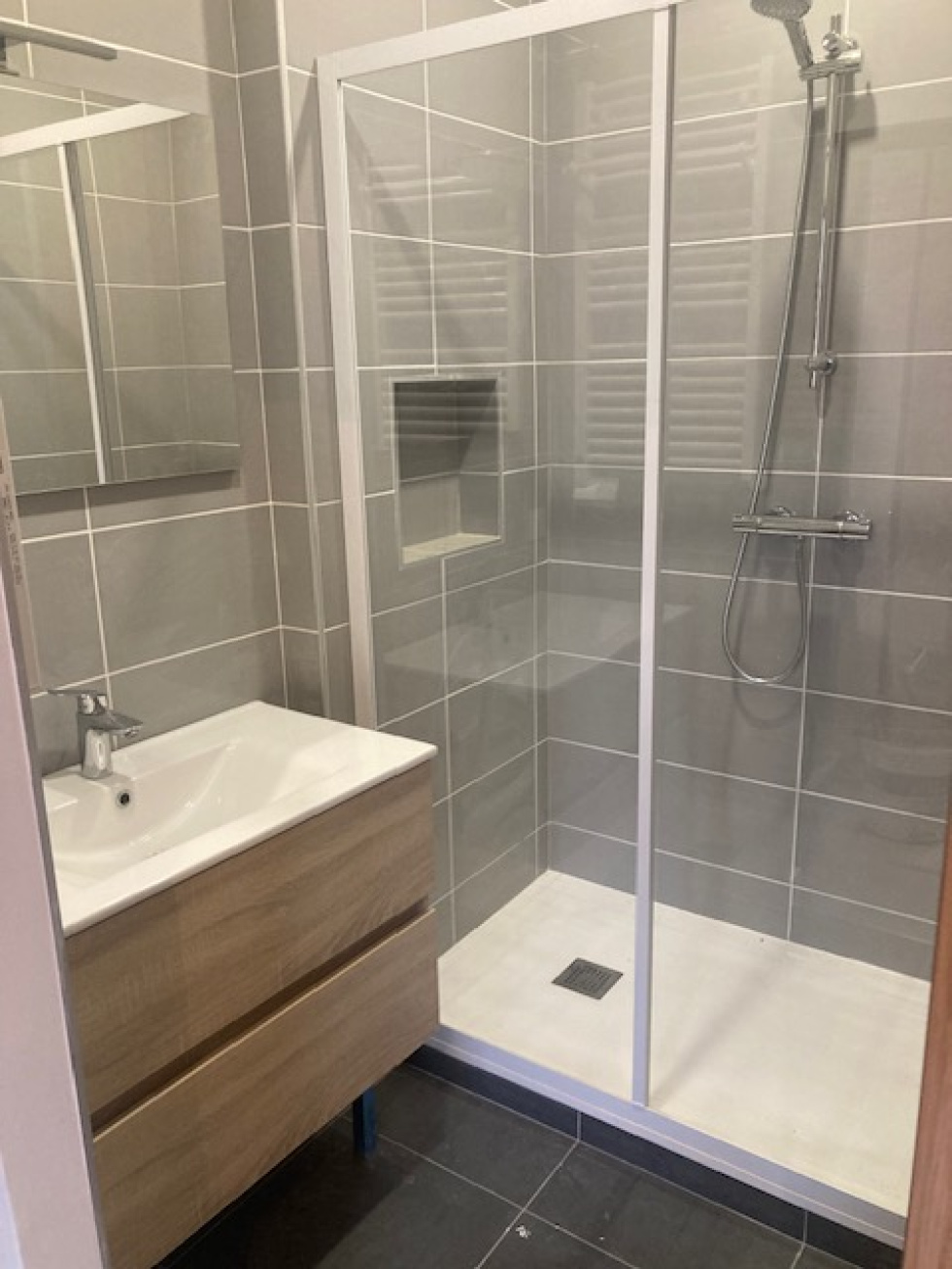 Bel appartement T2 idealement situé en plein centre de la commune d'Unieux, entierement refait a neuf et d'une surface habitable d'environ 32 m². Cet appartement au 2ème étage/3 de la résidence (sans ascenseur), se compose de : hall d'entrée avec un placard portes coulissantes, rangements + penderie avec miroir, séjour/cuisine équipée (hotte, lave vaiselle, four, plaques de cuisson et évier avec égouttoir) ; toilette indépendant avec WC suspendu et placard ; salle d'eau carrelée et faiencée avec douche à l'italienne et sèche serviette, meuble suspendu avec tiroirs, miroir et luminaires (emplacement machine à laver) ; une chambre avec placard (tiroirs et penderie + tête de lit avec étagères, veilleuse et prises). Chauffage et eau chaude individuels électriques avec radiateurs à inertie programmables. Eau froide individuelle. Loyer : 480 €/mois HC + 20 € de charges communes, soit 500 €/mois cc. Dépot de garantie : 480 € (un mois de loyer hors charges). Honoraires agence : 221 € (Bail : 125 € + EDL entrée : 96 €) Disponibilité : Immédiate