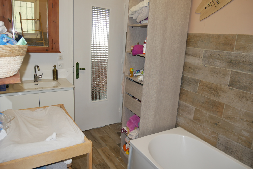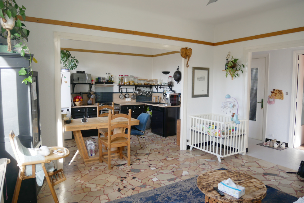 Découvrez cette agréable maison mitoyenne d’un côté de 80 m² hab, élevée sur sous-sol complet, offrant un cadre de vie fonctionnel et confortable. Au 1er étage, vous trouverez un hall d’entrée desservant une belle pièce de vie lumineuse avec cuisine équipée ouverte sur le séjour, trois chambres, une salle de bains comprenant baignoire et douche, ainsi qu’un WC indépendant. Le sous-sol complet propose de beaux espaces annexes : un garage, un bureau ou pièce de rangement, une cave et une chaufferie. L’ensemble est implanté sur un terrain de 1 088 m², offrant un bel espace extérieur.